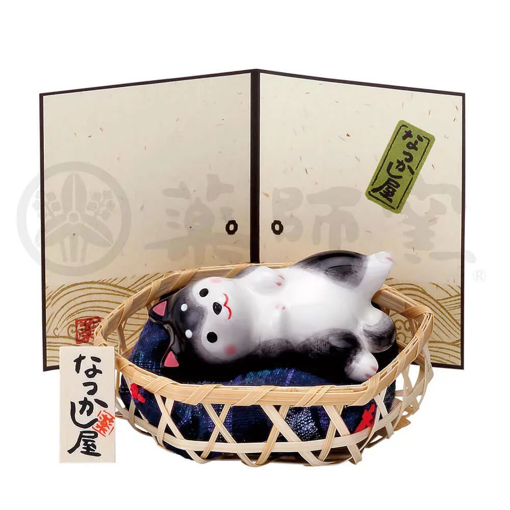 Shiba หมาชิบะ สีขาว ดำ ท่านอน พร้อมเบาะรองและฉาก